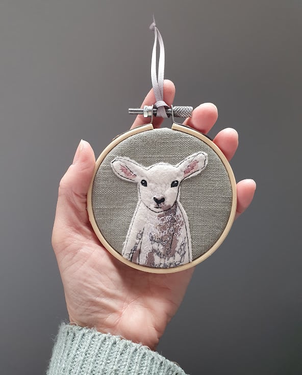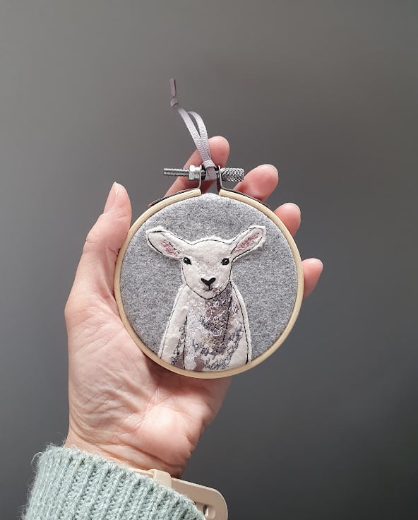 Handmade Lamb mini hoop (hanging decoration)