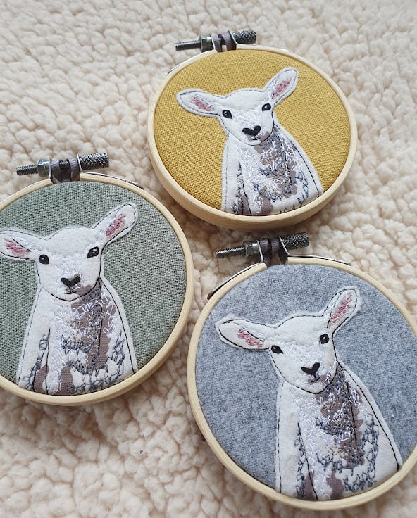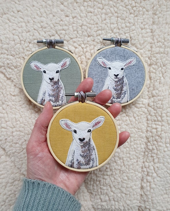 My Sheep & Lamb greetings card and melamine coaster are popular designs, and were the inspiration behind this mini hoop!