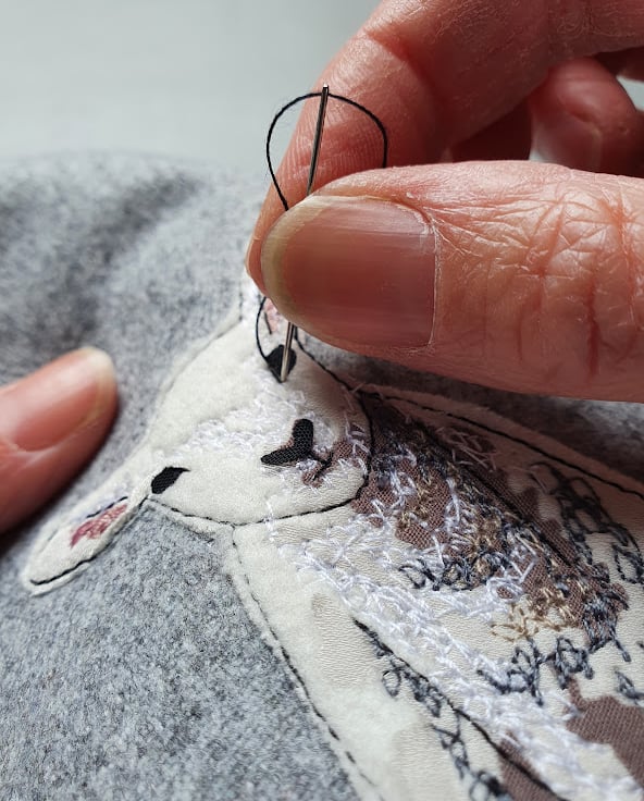 I’m Helen, and I create original textile designs using a combination of fabric appliqué, freehand machine embroidery and hand embroidery.