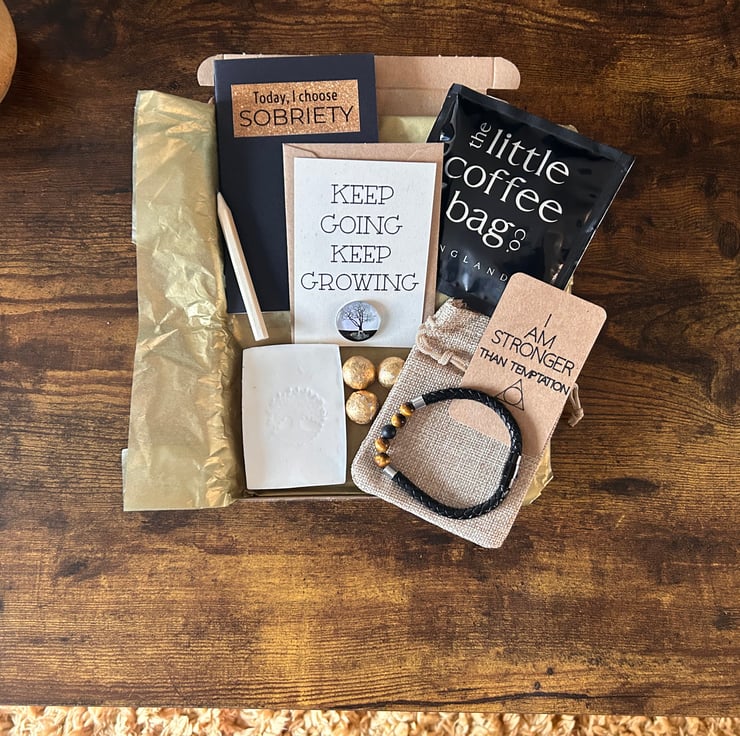 I am personally in recovery and have just started my second year in sobriety from a 15 year addiction. So I know first hand how hard addiction can be and what a fight overcoming it is. So I wanted to design a beautiful box personalised to sobriety! A real special gift to give someone overcoming the odds, and striving and thriving in a life away from addiction! X