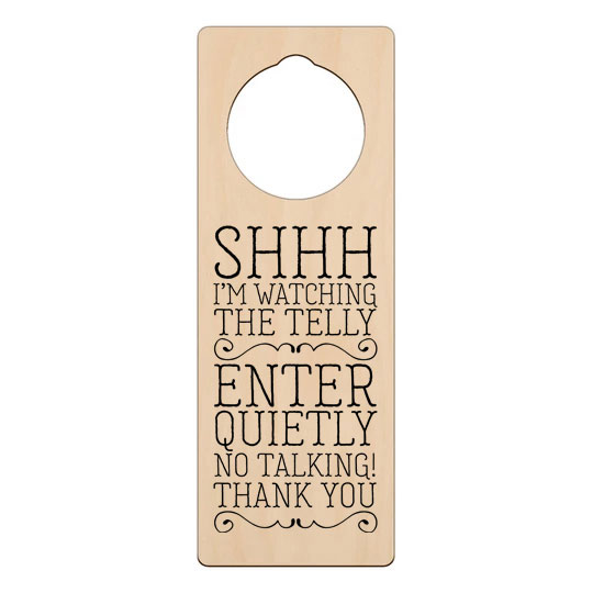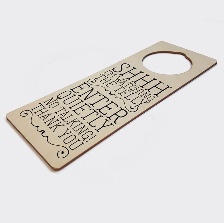 So with that in mind, I thought I'd design a unique doorhanger especially for that situation. Just pop it on the door handle and let everyone know they need to keep quiet. The door sign is handmade to order, so you can choose whether to have "I" or "We" word options.