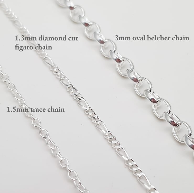 2) a figaro chain which is 1.3mm and diamond cut for added sparkle