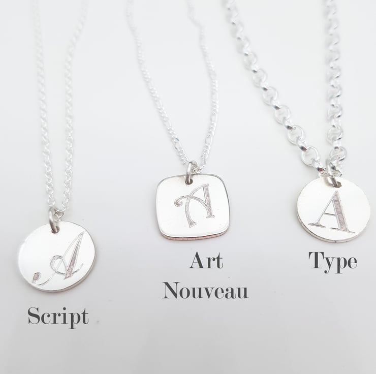 I've started engraving and I love it! I couldn't decide which font to go with so I thought I'd offer three options. I wanted a personalised, really good solid silver initial pendant. That perfect everyday necklace that you never take off and I think this is it!
