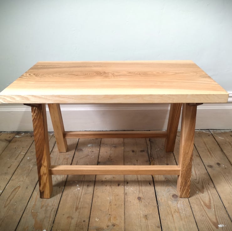 This table was inspired by the timber it was made from. Cut from a single slab of ash which came from a windfallen tree in rural northumberland, this slab had been slowly drying in the workshop for three years.It took three years of looking at this piece of beautifully but challengingly grained wood to discover what it was destined to become. I knew I wanted to keep as much of the slab whole for the top as possible which influenced its final size, the leg construction and overal dimensions of the piece
