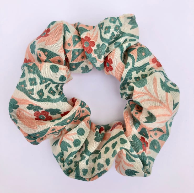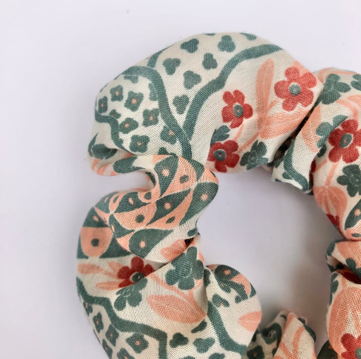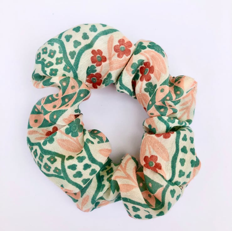Made from up-cycled/reclaimed fabric. A lovely pastel floral scrunchie.