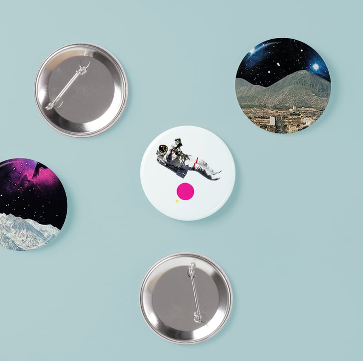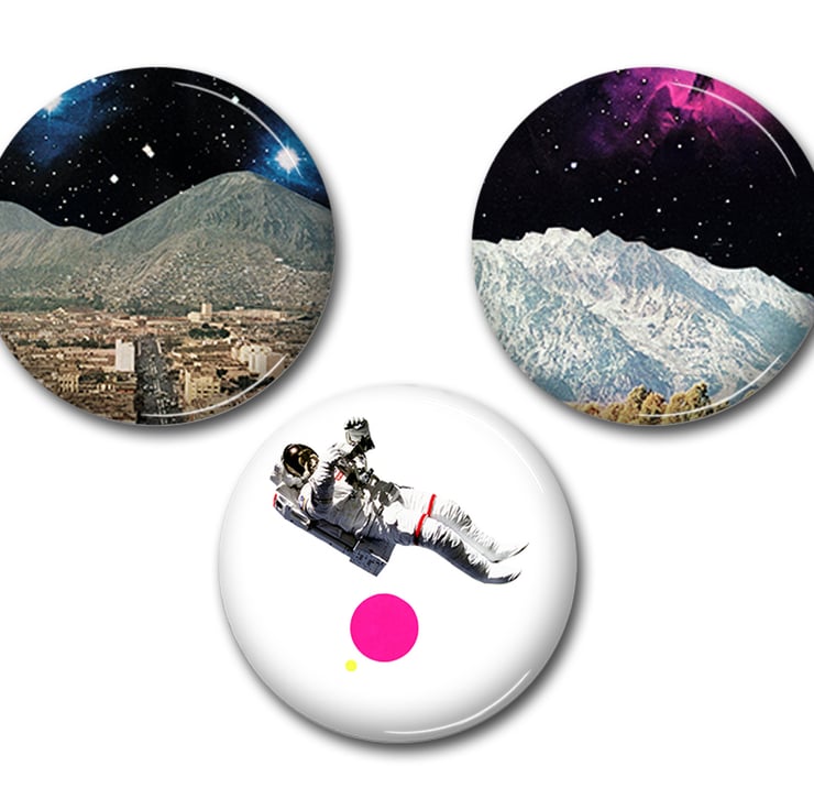 A set of three 25mm space badges. Calling all sci-fi lovers! If strange planets, deep space and astronauts are what you're into, these are for you.
