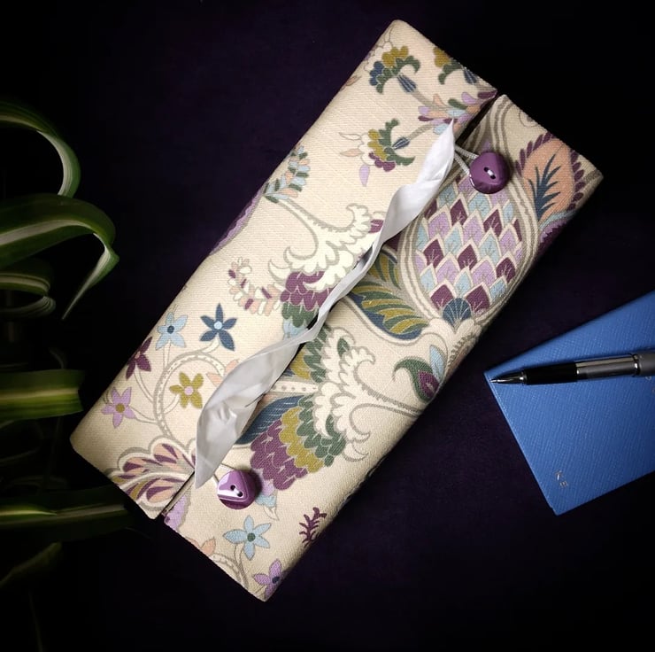 Printed cotton tissue box cover handmade in Glasgow, Scotland