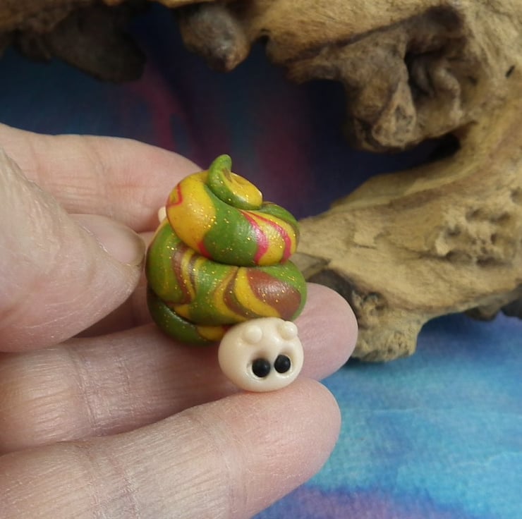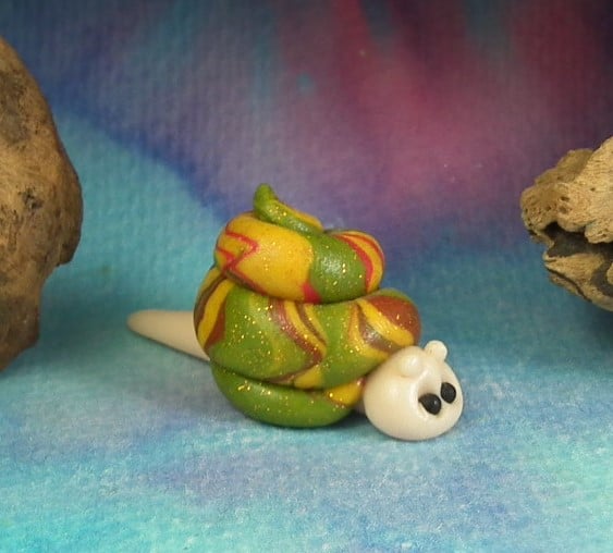 This is a 'one of a kind' creation having been entirely handmade without the use of moulds here at my studio on the Sussex Coast. Modelled with my own blend of polymers before sealing with lacquer, this snail has sparkling onyx eyes. The snail is two inches long.