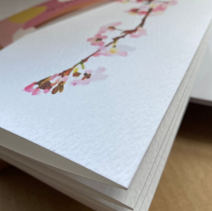 - Heavyweight, uncoated, lightly hammered 300gsm paper with a bright white hue