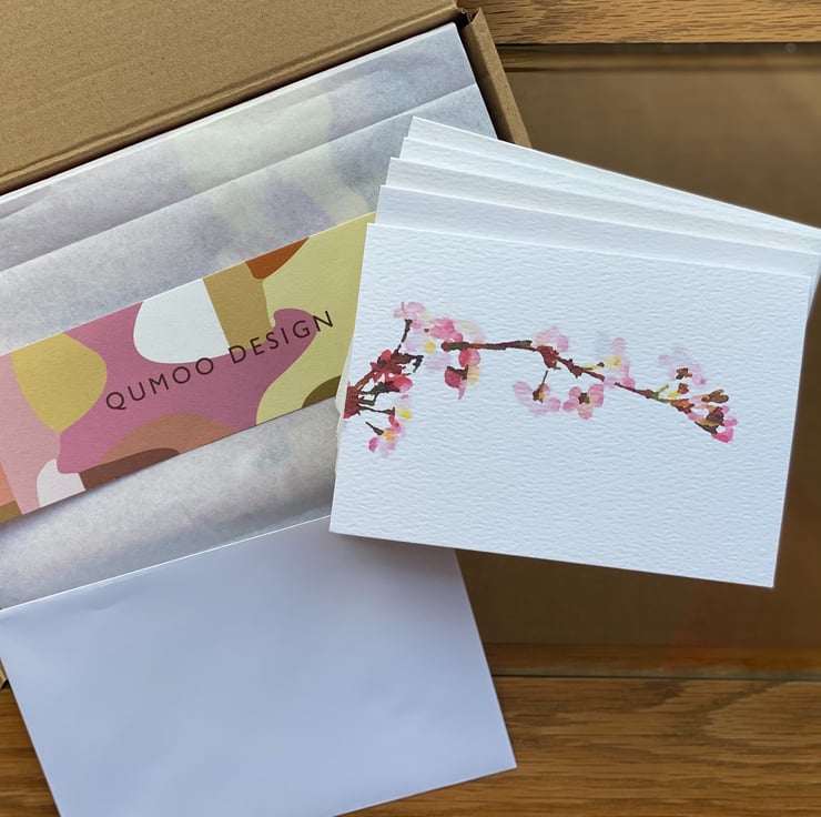 This is a lovely blank card multipack selection box of five (5) A6 cards with two different designs "BLOSSOM CHERRY PINK" and "BLOSSOM PLUM WHITE" perfect for almost any occasion: wedding, birthdays, new homes, get well, anniversary - you name it!