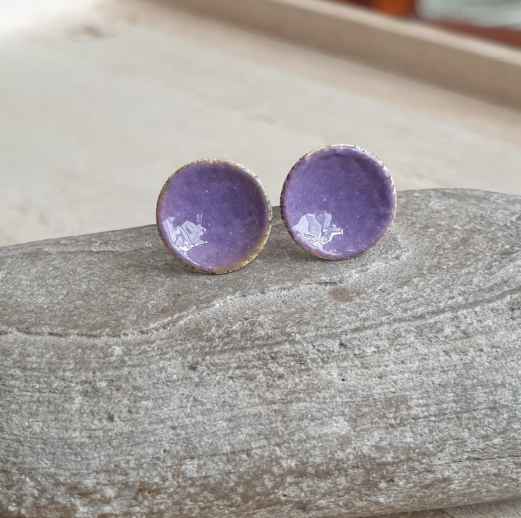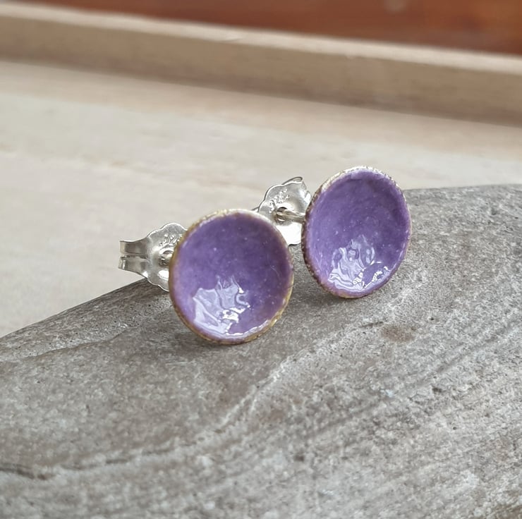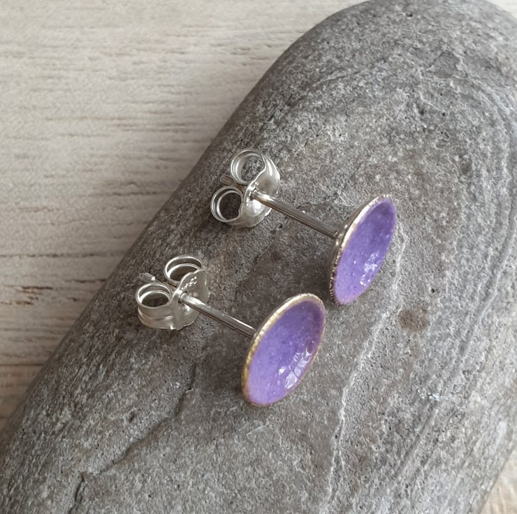 These lilac enamel studs have been handmade from sterling silver sheet which I've cut into little circles and then domed slightly. I've filled them with vitreous enamel in opaque lilac and given the backs a shiny polished finish. They come complete with butterfly backs.