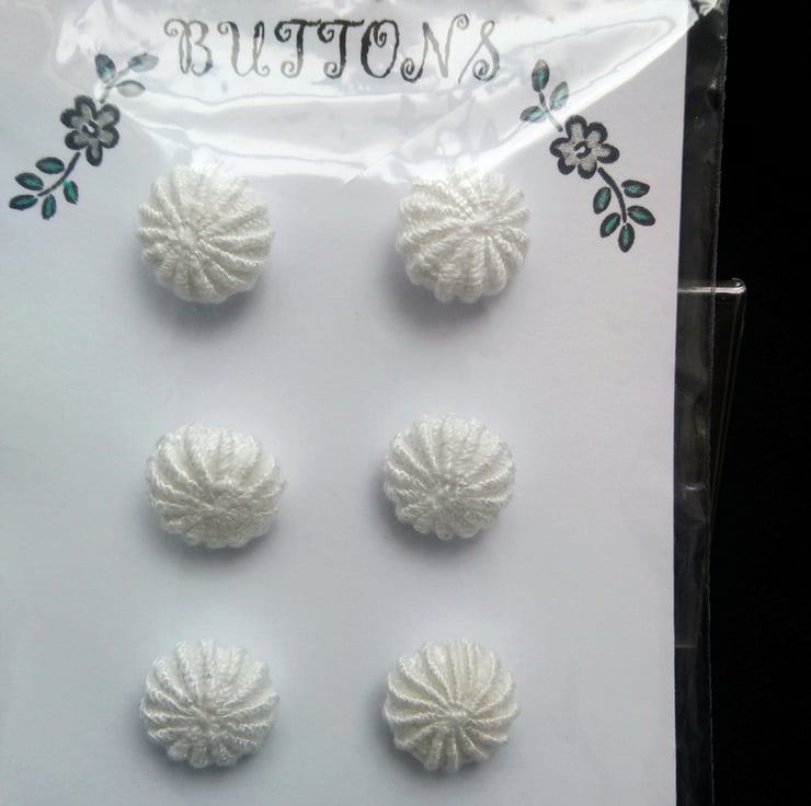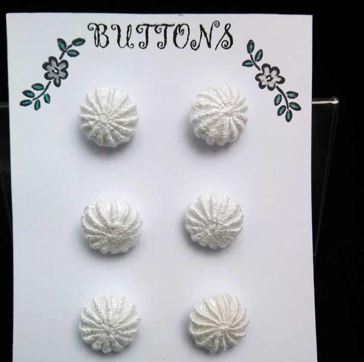 Handmade Embroidered Yorkshire Style Covered Buttons. These Handmade Buttons have been embroidered using Perle Cotton Thread. Tightly Covered over a plastic button mold. Washable on a gentle wash.