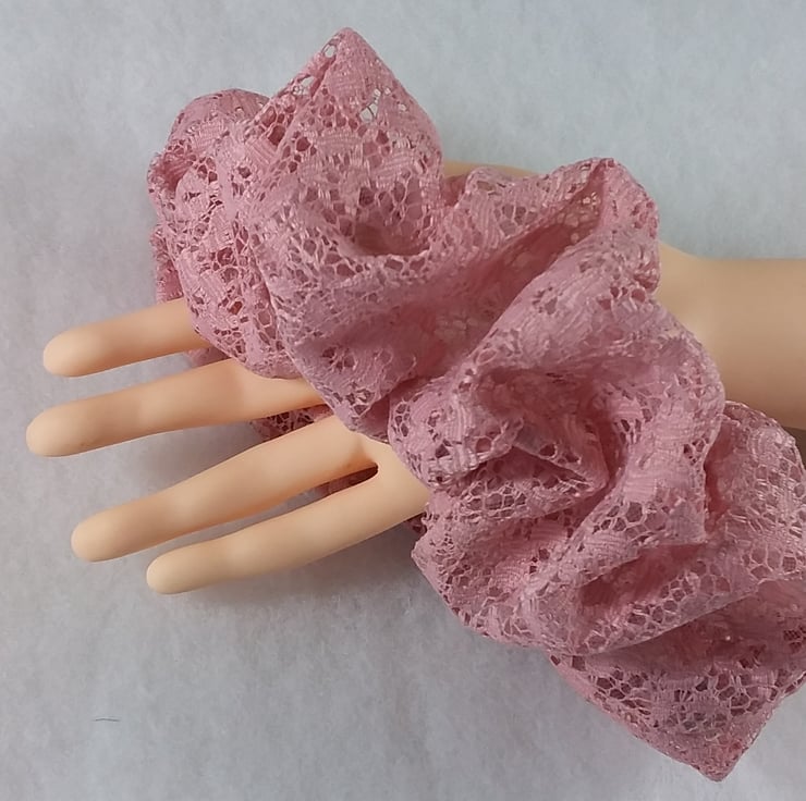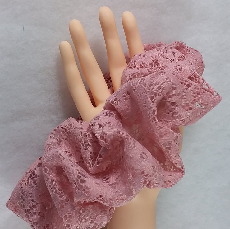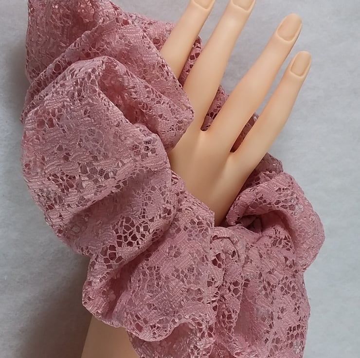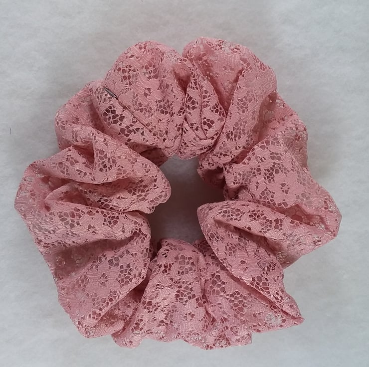 Made in Rose pink lace, scrunchie