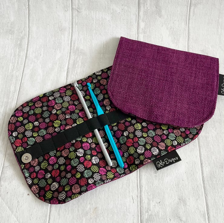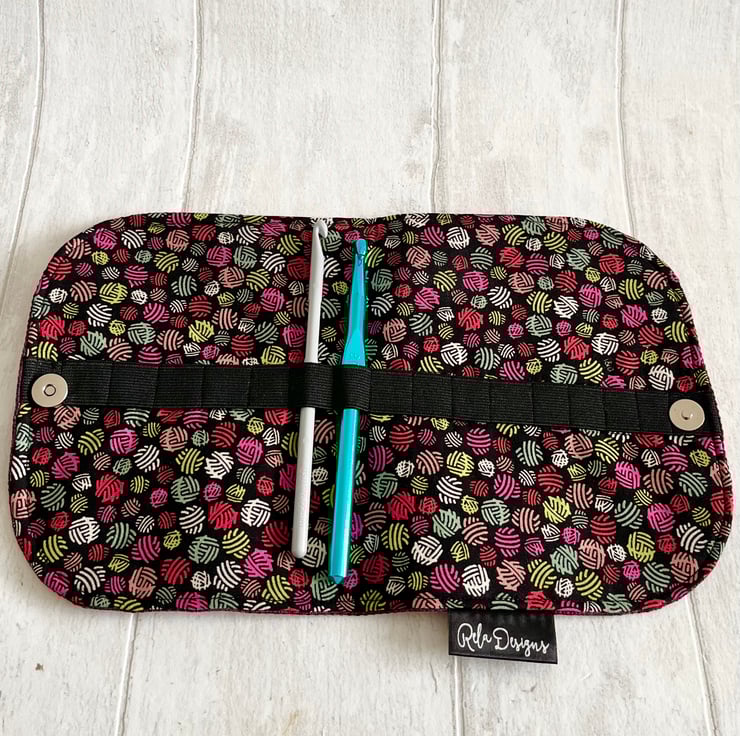 A piece of elastic runs the length of the case and is machined into sections to hold your hooks. For storage the case folds in half and fastens with a magnetic fastening.