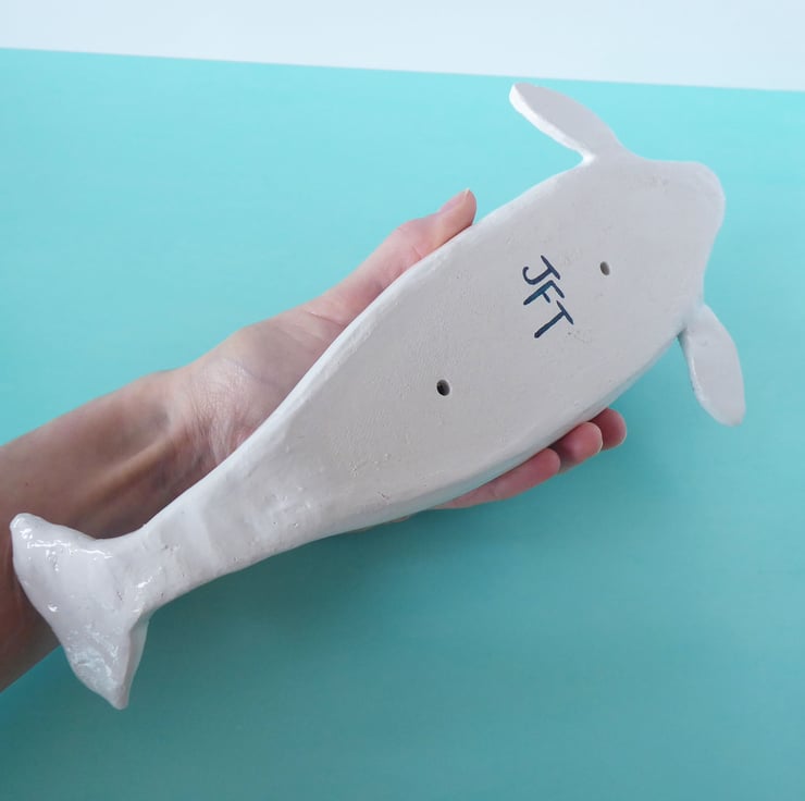 Narwhal Ceramic Sculpture. The Tusk is Removable (as pictured) to avoid Breakage during Delivery.