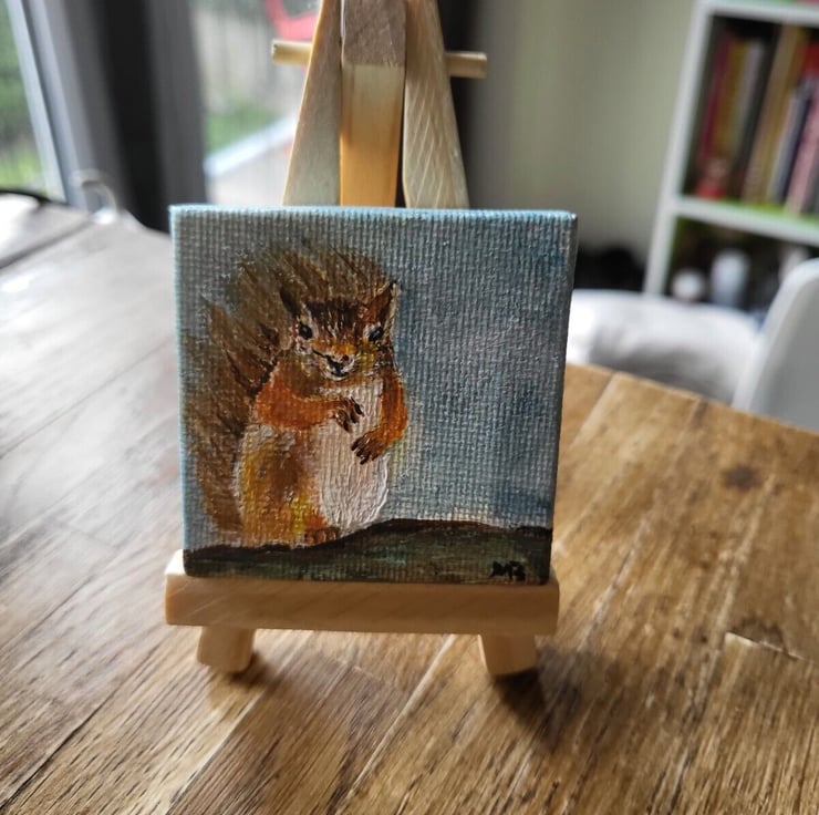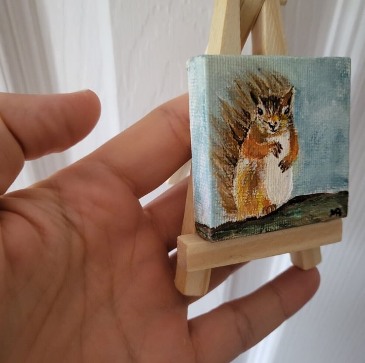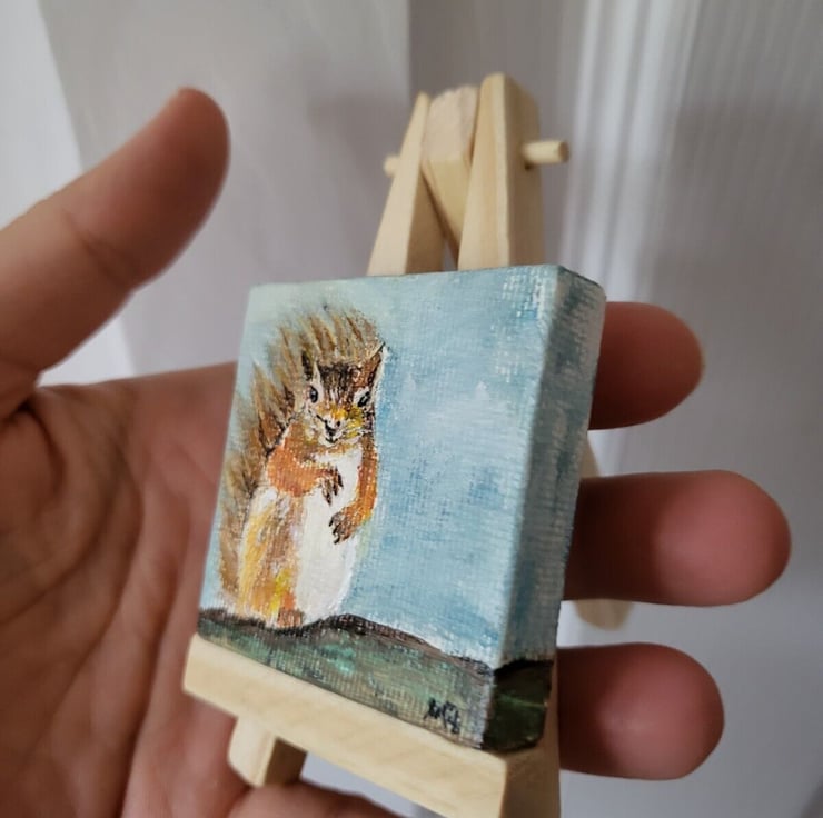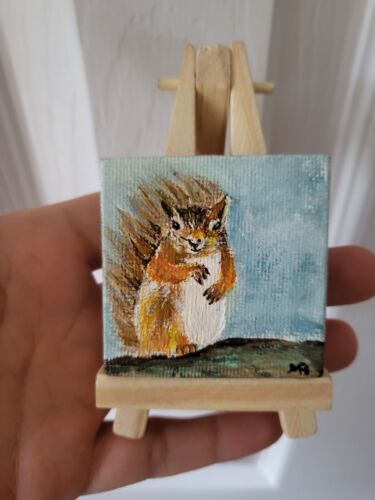 Original acrylic mini painting on mini canvas coming with mini wooden easel.