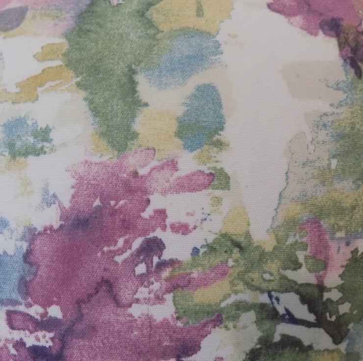 This high quality 100% cotton fabric features an impressionist woodland scene of muted pastel colours of purple, blue, yellow and green blending artistically together.