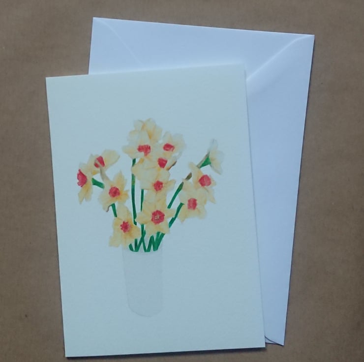 This is a handmade card that I print myself from a scan that was made of my original pencil artwork os Spring Daffodils. Giclee prints on Epson Premium Lustre paper are also available, as is the original artwork. See separate listing.