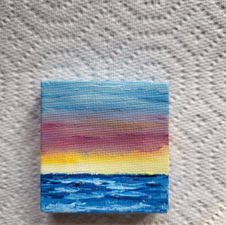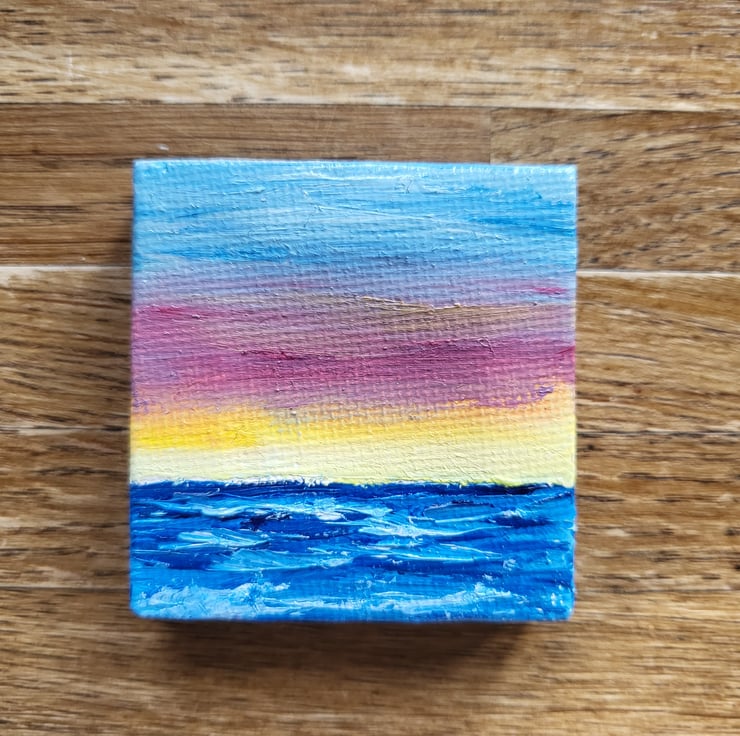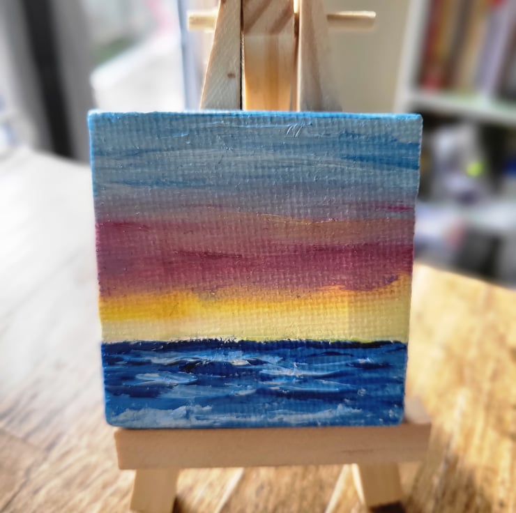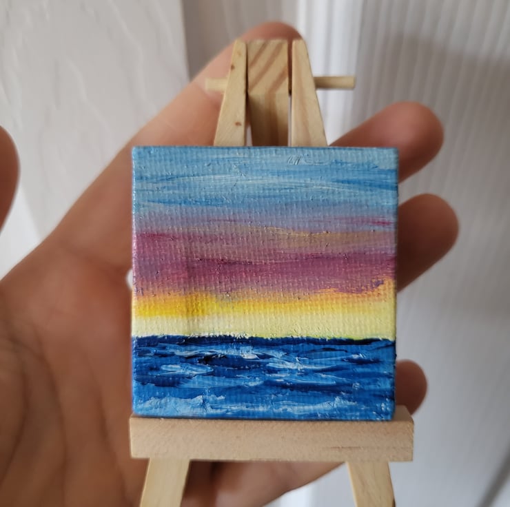 Original oil mini painting on mini canvas coming with mini wooden easel.
