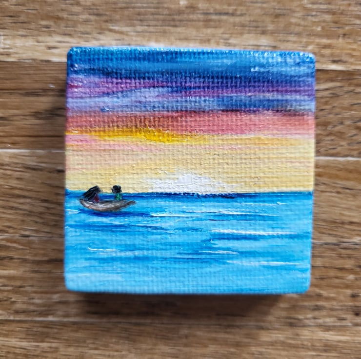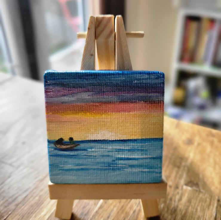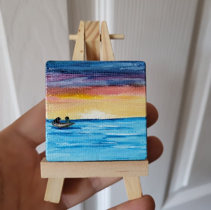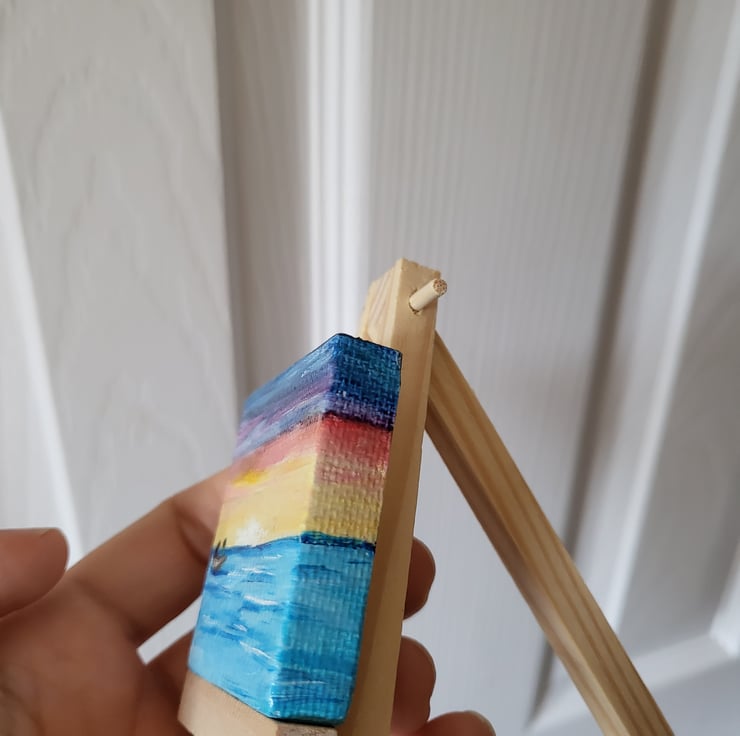 Original oil mini painting on mini canvas coming with mini wooden easel.