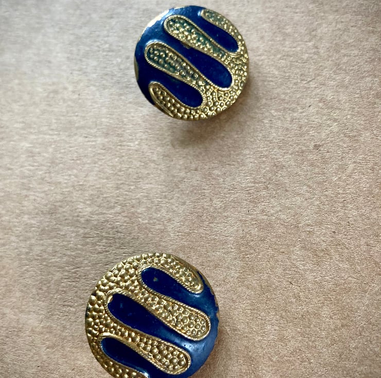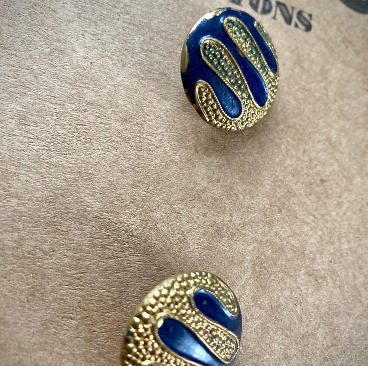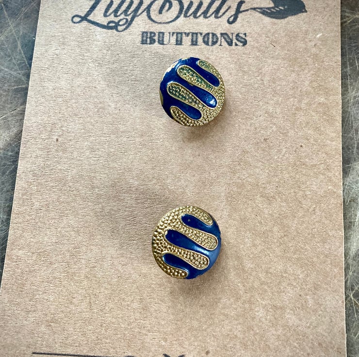 2 Lovely Vintage Blue and Gold Metal Buttons - 23mm, these are German no idea what era they are but they are stunning, showing some wear and tear.