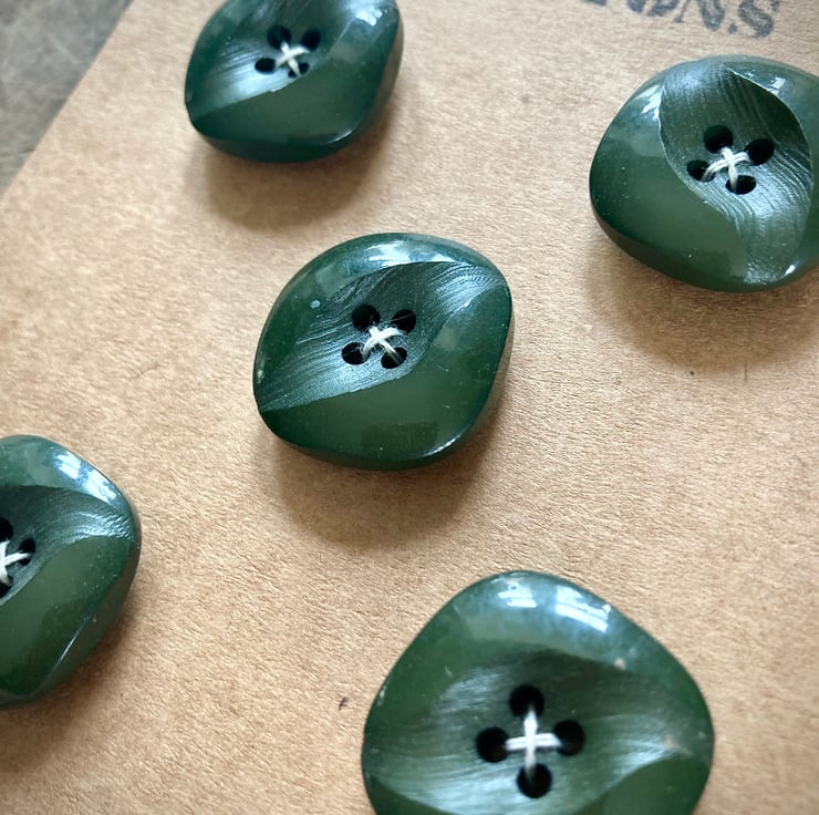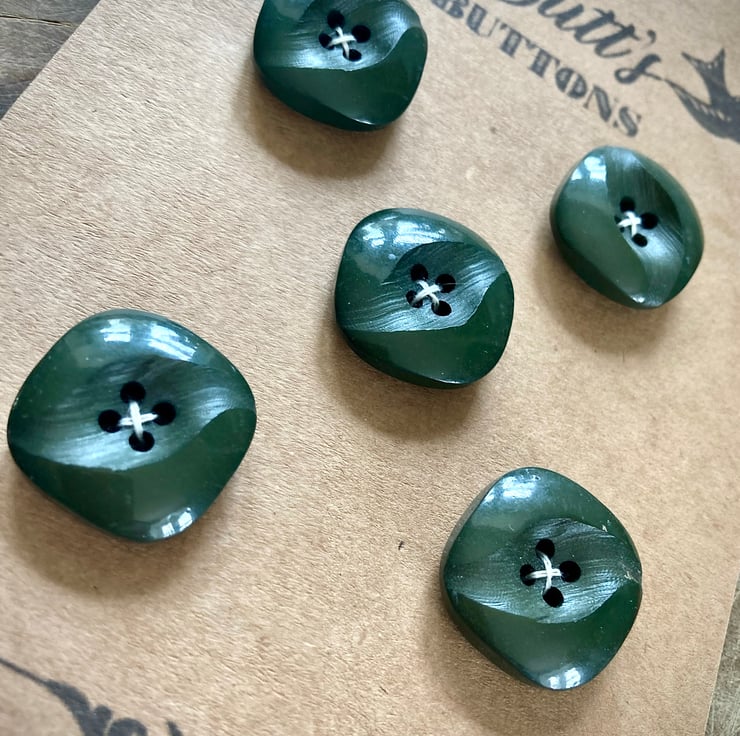 5 Vintage Olive Green Chunky Buttons 22mm x 22mm,
