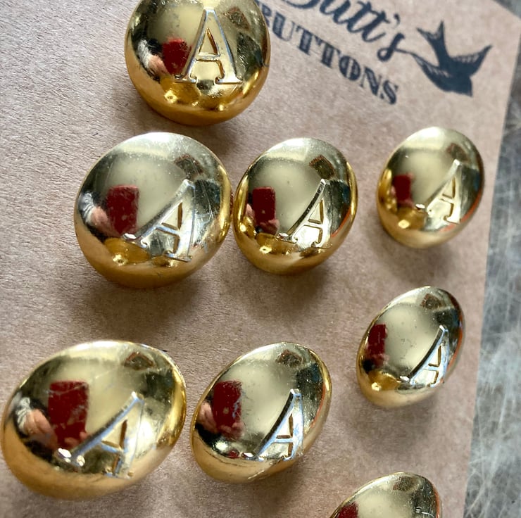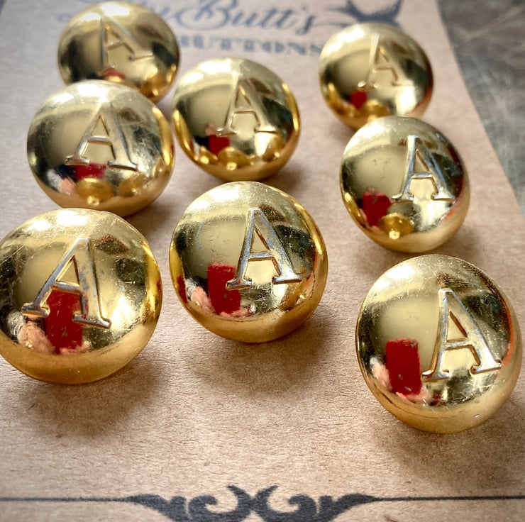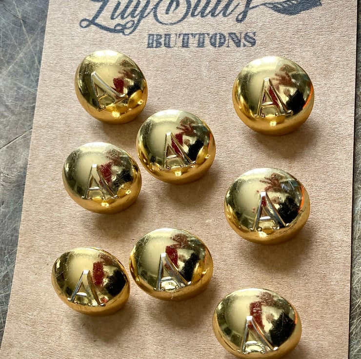 8 Vintage Gold Metal Blazer Buttons, these have the letter A on them, 25mm