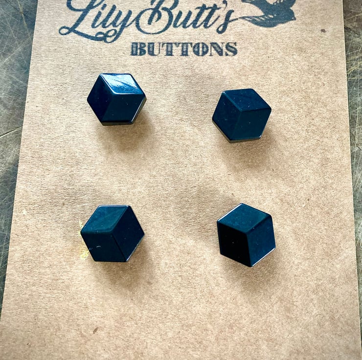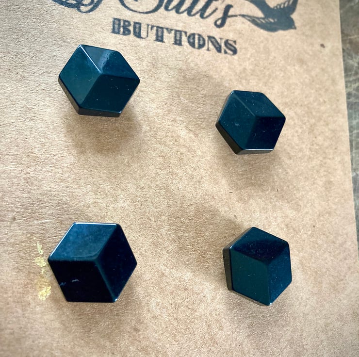 4 Lovely Black Vintage Buttons, that look like they are cubes! Clever! 20mm
