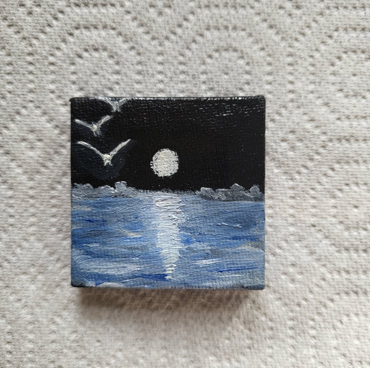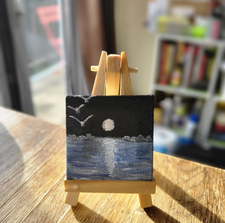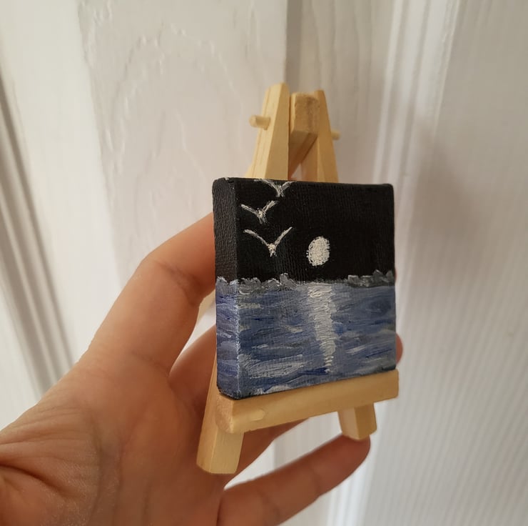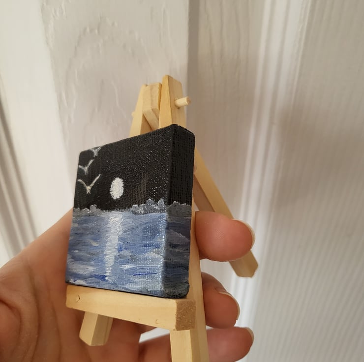 Original oil mini painting on mini canvas coming with mini wooden easel.