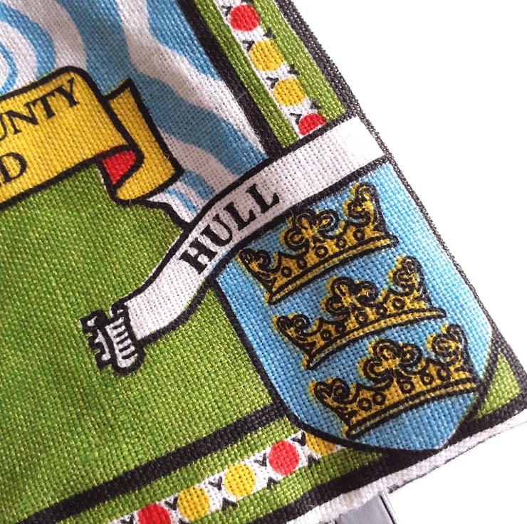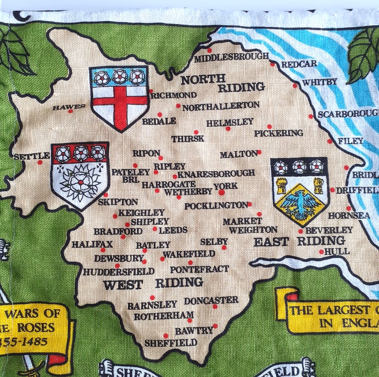 This lovely tea towel was one of those donations given to me by a kind stranger.I love its strong graphic illustrations, the bold italic lettering, and I also love Yorkshire!