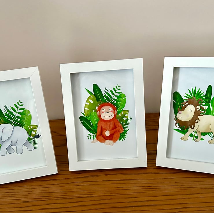 Cute trio of photos great for baby room decorations. Digitally drawn by myself on procreate. Great to brighten up any room. Can be bought with or without frames