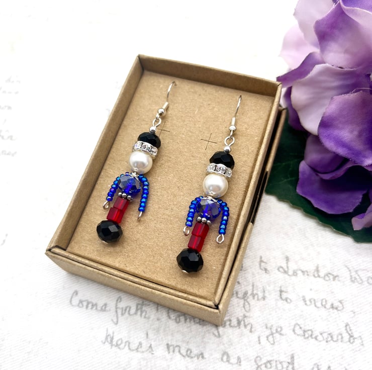 My Nutcracker solider earrings have been so popular, I thought I would recreate them in red, white and blue colours for the coronation! CURRENTLY MADE TO ORDER