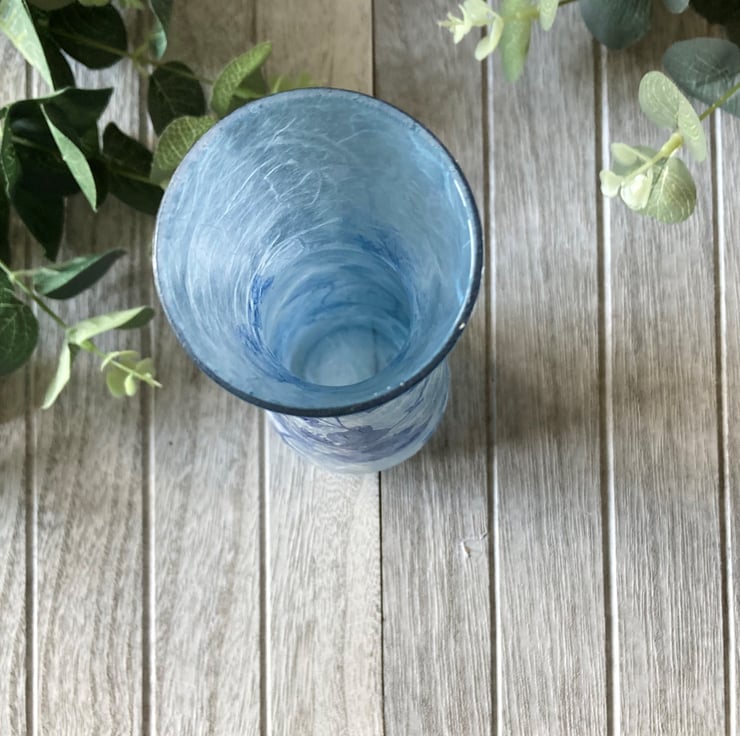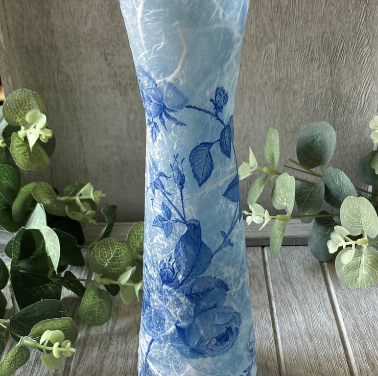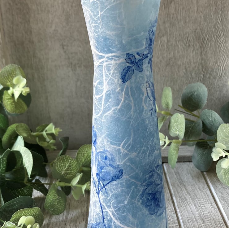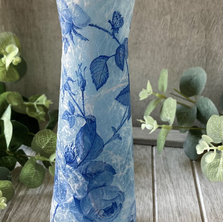 Decoupage Upcycled Blue Glass Vase Blue Roses