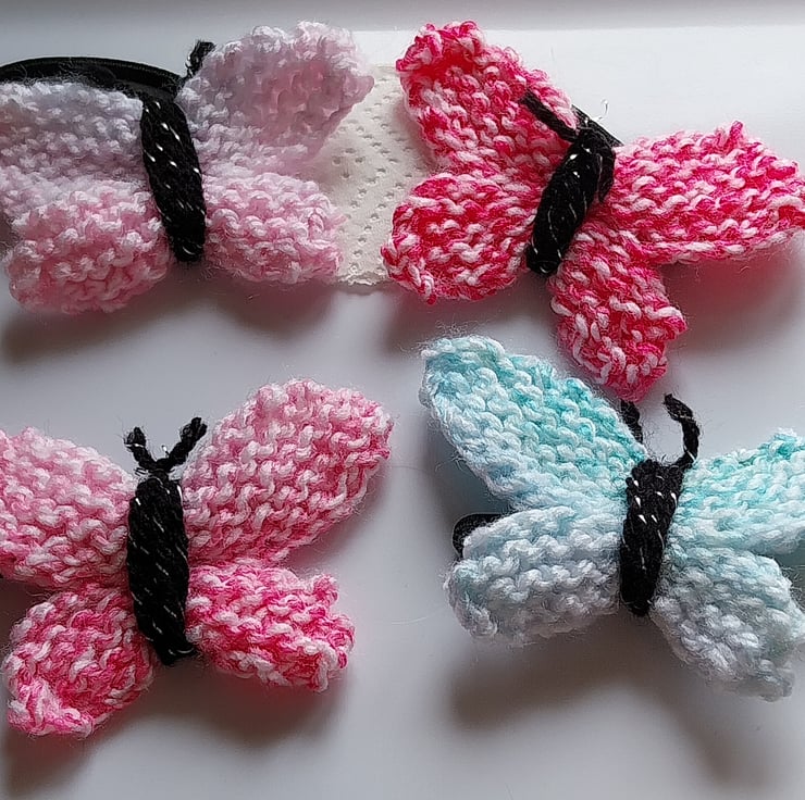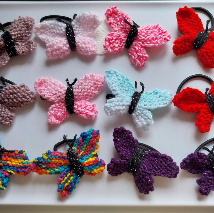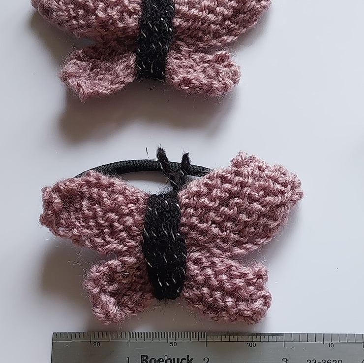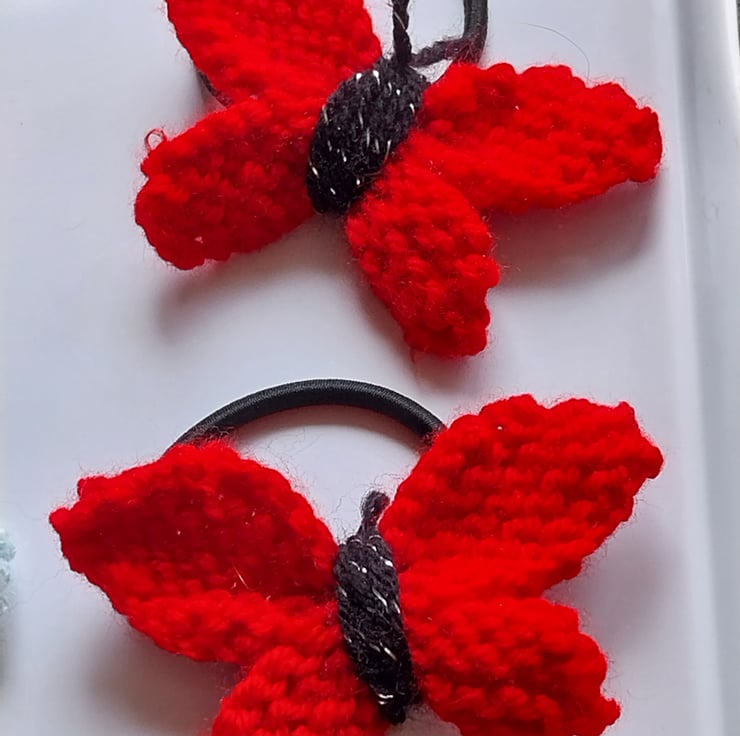 Any 2 handmade knitted butterfly hair bobbles for sale.