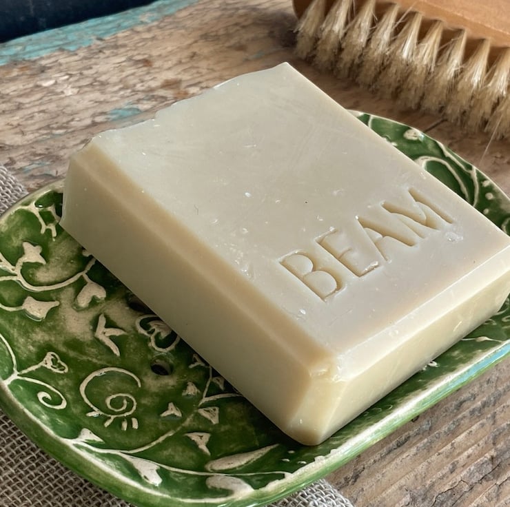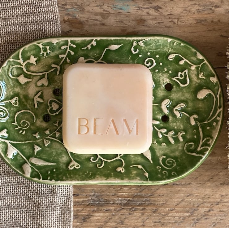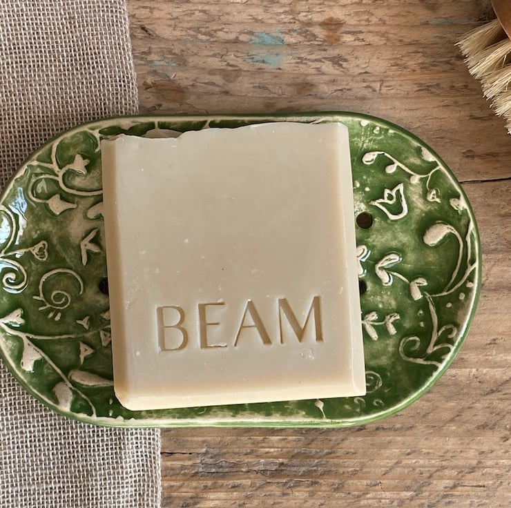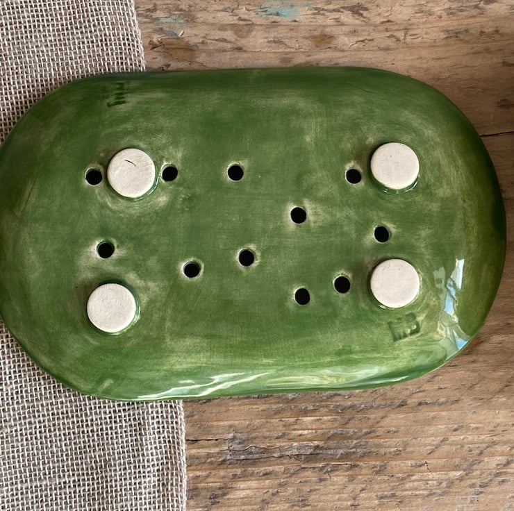 The dish gently curves to hold the Soap which drains easily due to the addition of drain holes and feet.