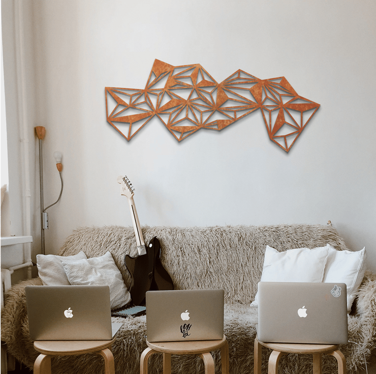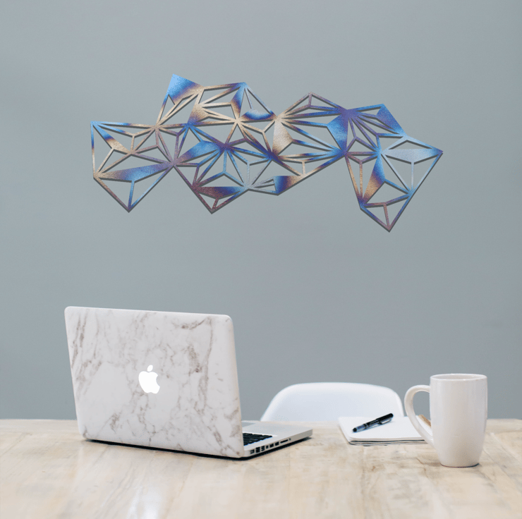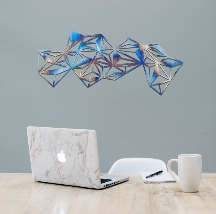 An innovative artist, fascinated by the interplay of shapes and dimensions, set out to create a piece that would challenge traditional design. Experimenting with 3D polygons, he crafted a mesmerizing metal wall decor that captured the imagination of all who saw it. This modern abstract piece now graces the walls of homes and offices, serving as a constant reminder of the limitless potential of creativity and the power of innovative design.