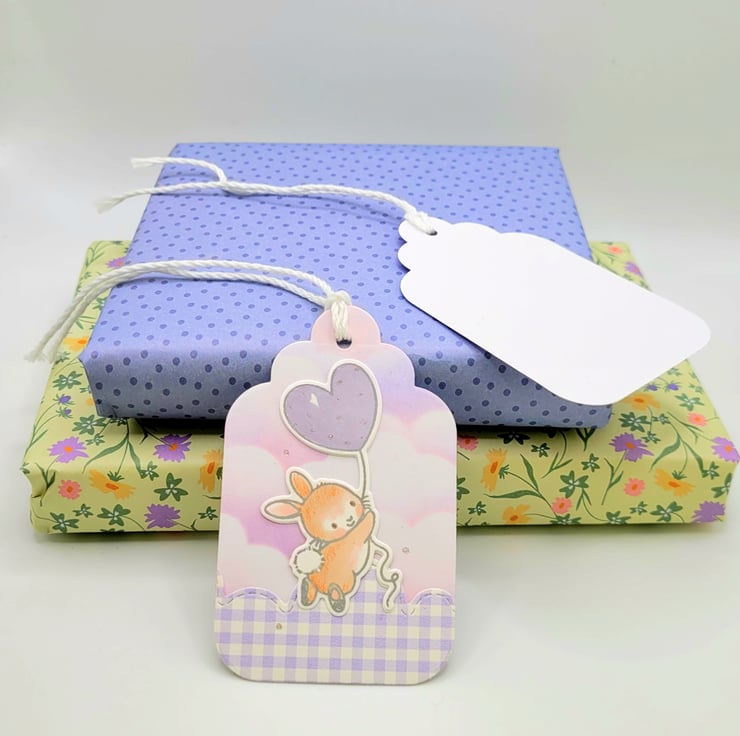 Each bunny and gingham gift tag has been individually made using quality archival inks, craft stamps and cutting dies. The reverse side of the tags is plain white, for writing a greeting.