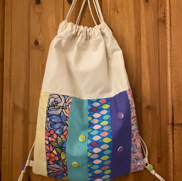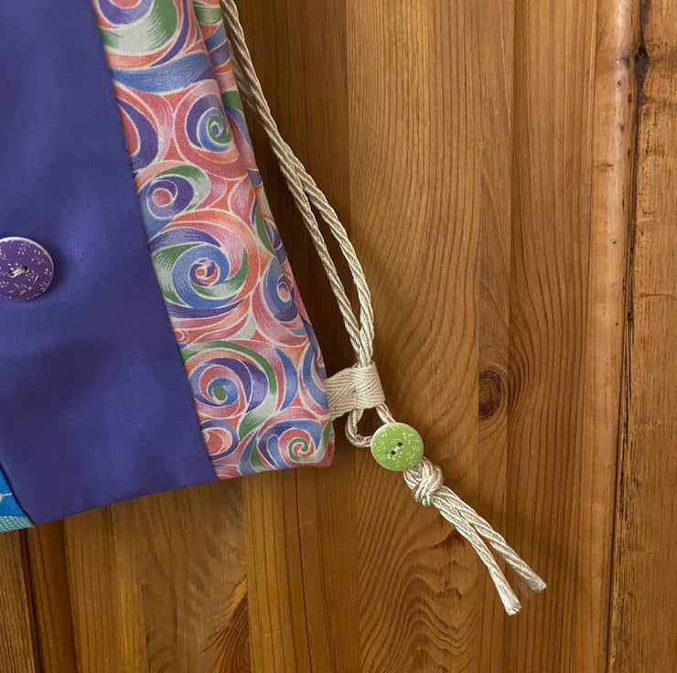 Handmade drawstring bag fully lined and totally unique.