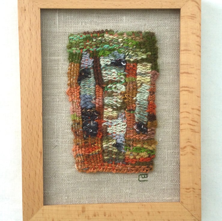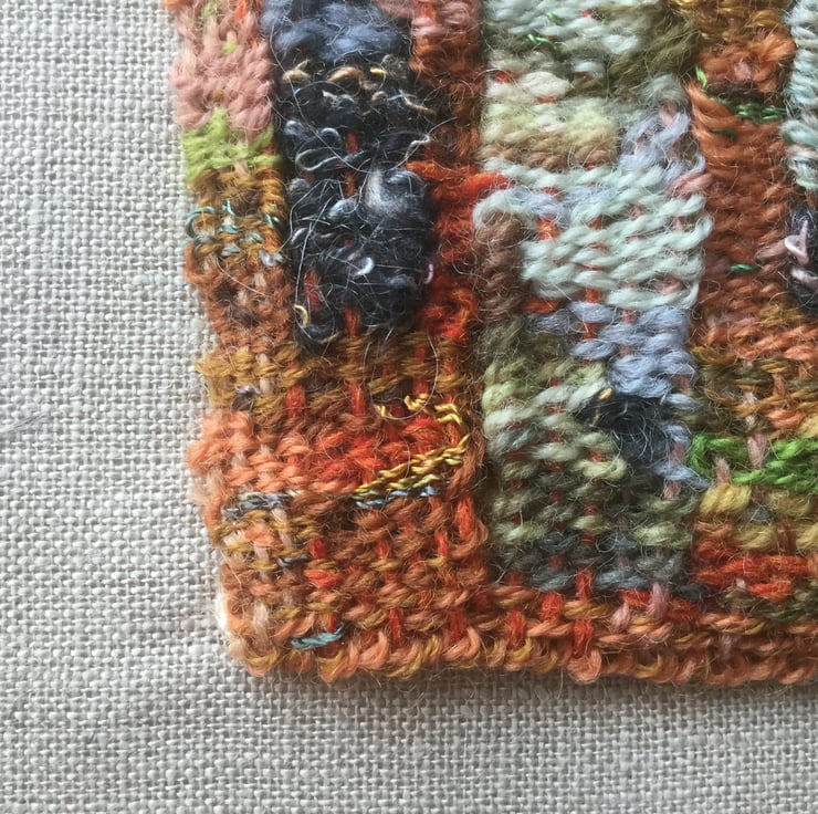 This was inspired by the painting Birch Wood by Klimt. I am a huge fan of Klimt and although he is most well known for his beautiful decorative portraits, he painted some really stunning landscapes and I particularly love this painting with its subtle colours and textures. I have tried to capture some of those subtle shades in this weaving.