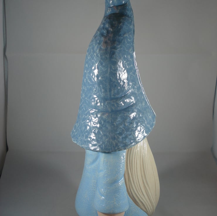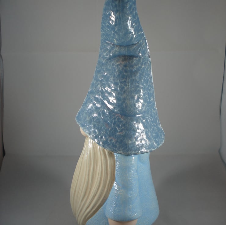 I have for sale a ceramic garden/home ornament, which was hand painted by myself. It is a tall freestanding gnome/gonk, dressed in a hat, coat and boots, in various shades of blue colours. This would make a lovely addition to anyone's home, garden, patio or perhaps given as a gift.