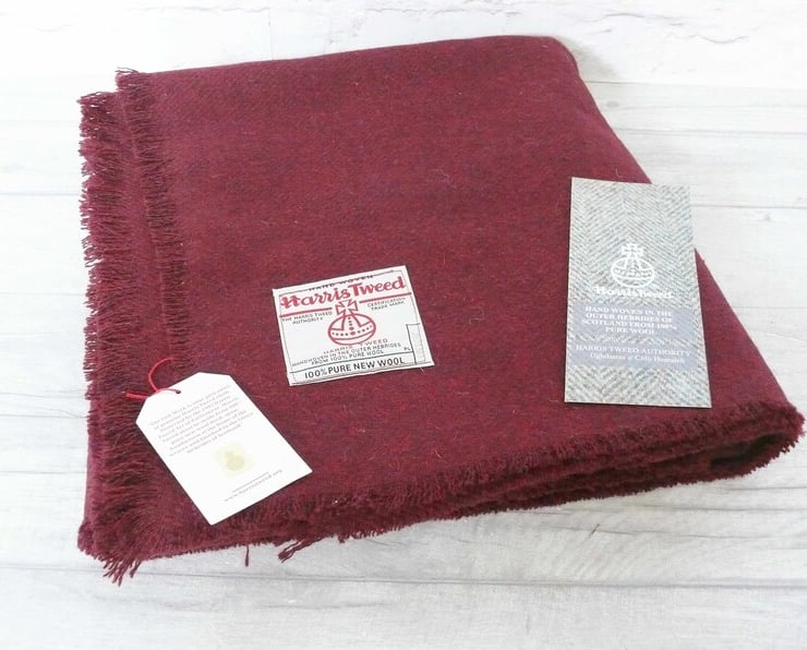one handmade blanket , using harris Tweed plain Claret cloth.