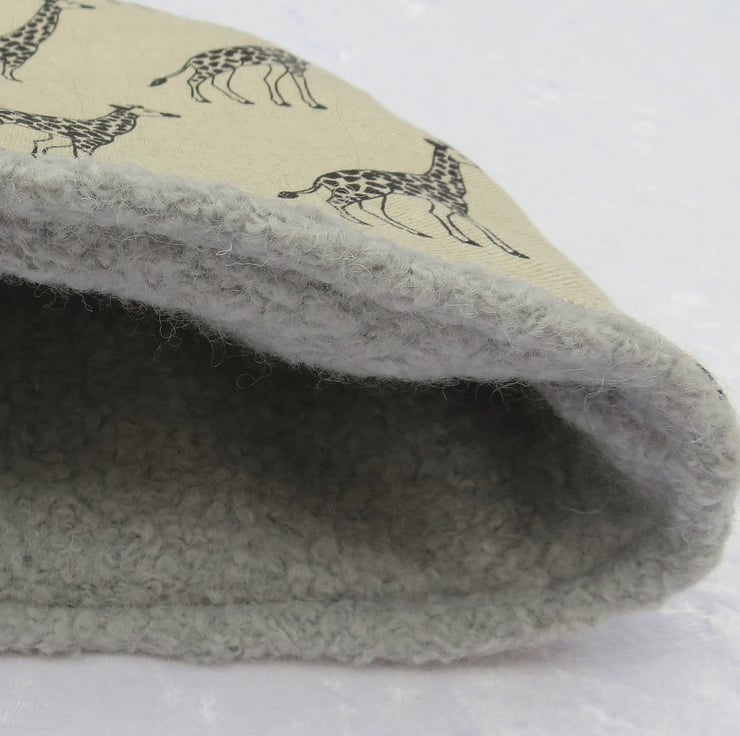 The fabric used is a medium weight cotton, with a giraffe design.