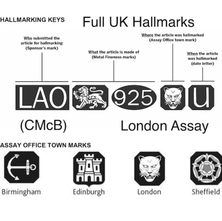 Stamped at The London Assay Office, Goldsmiths Hall to include the full UK hallmarks along with my unique registered sponsor’s/maker’s mark (CMcB) Carol McBride.