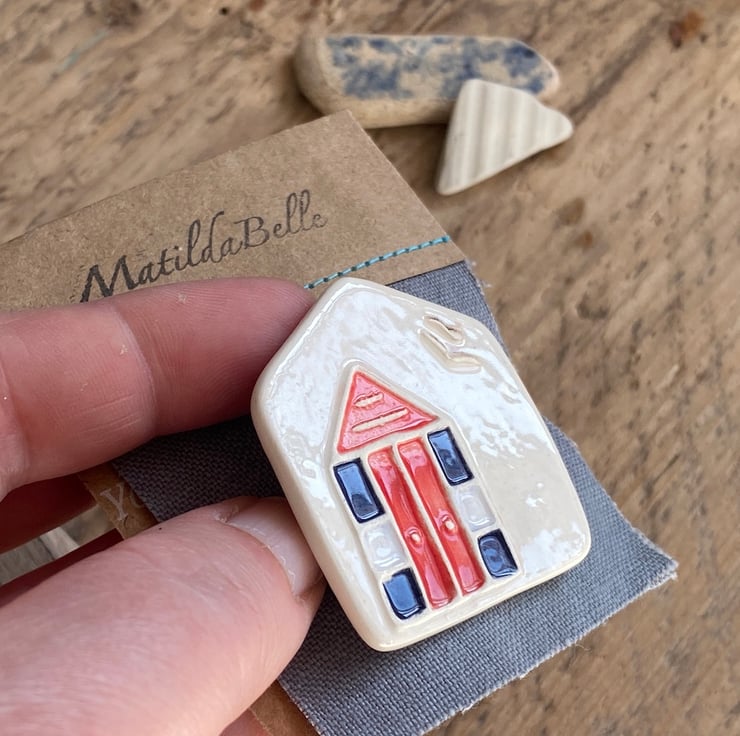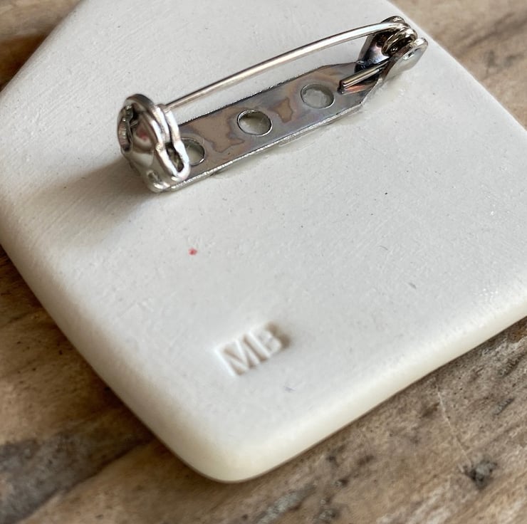 Hand crafted from Earthenware clay and twice fired these pretty brooches are fitted with high quality safety pins and stamped with the MB makers mark on the reverse.