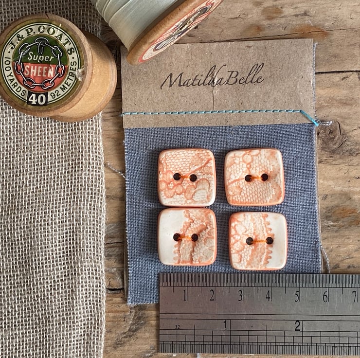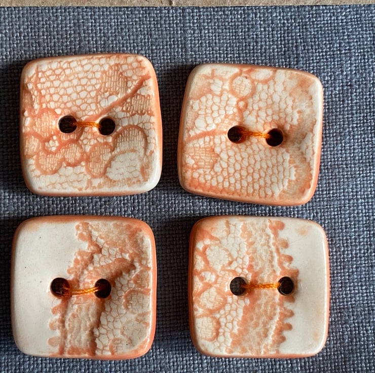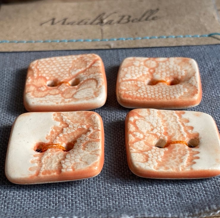 Buttons 20mm handmade Square Orange Pottery Lace set of 4