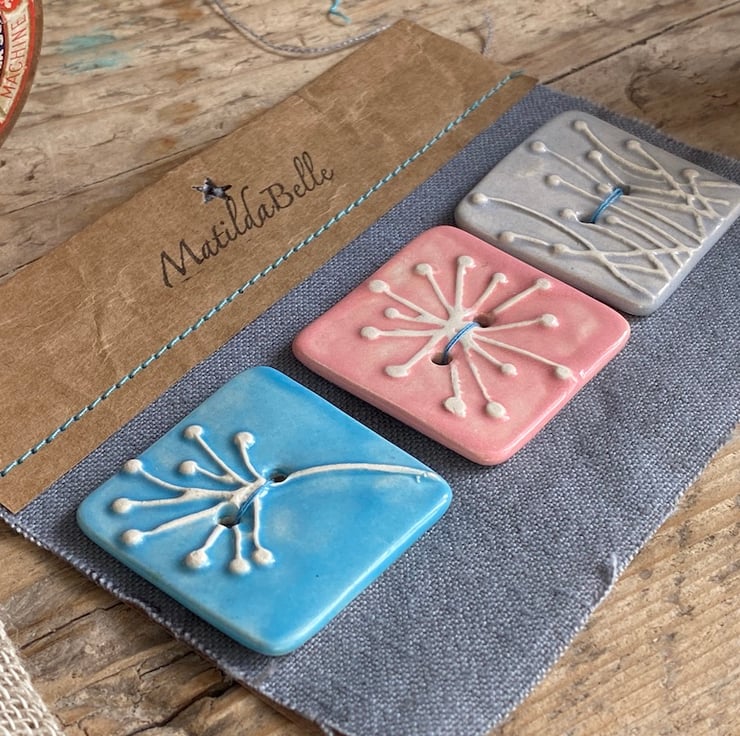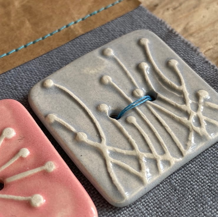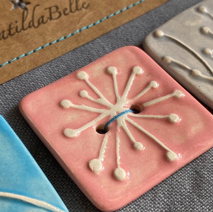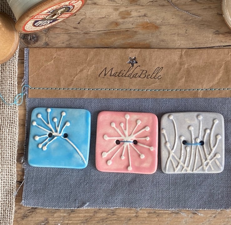 This Beautiful set of Square Botanical buttons have been handmade from Earthenware Clay and twice fired in the Kiln.