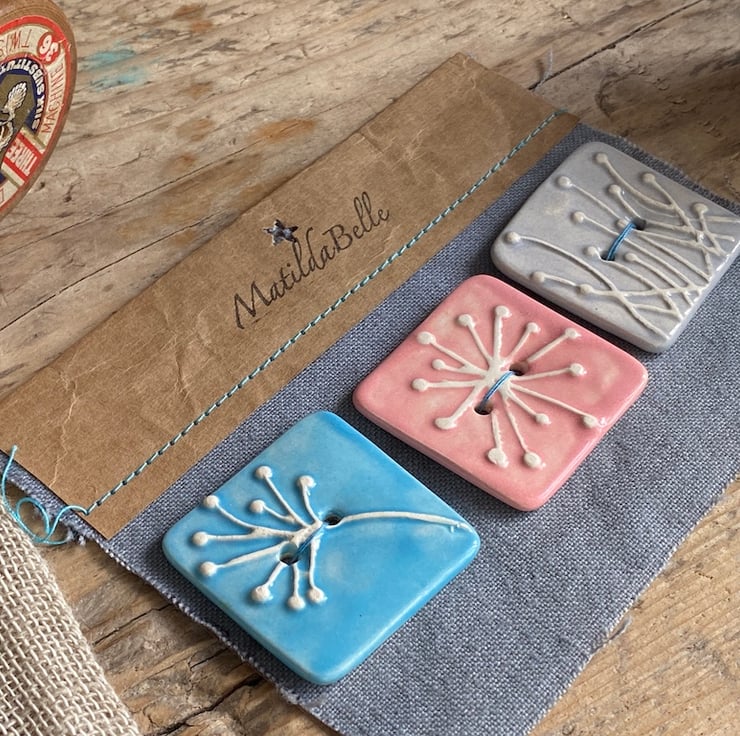 Each button is imprinted with an original MatildaBelle Carving inspired by the beautiful herbs that grow outside my Pottery studio.