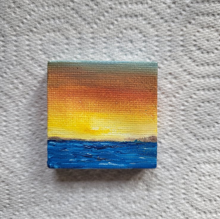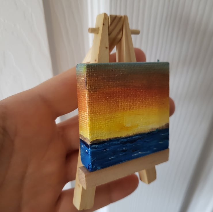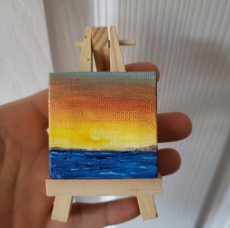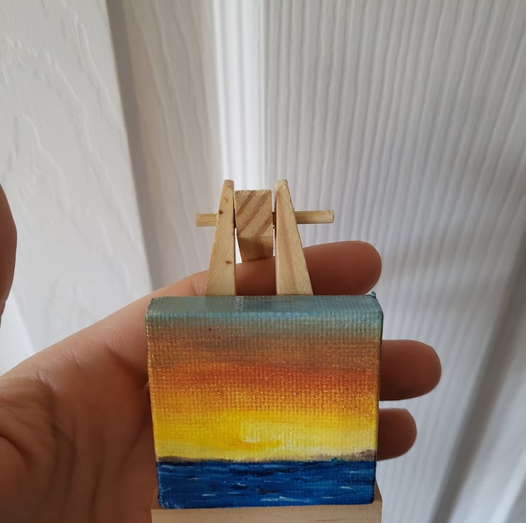 Original oil mini painting on mini canvas coming with mini wooden easel.