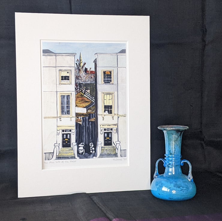 This is a giclée print on Hahnemühle Fine Art acid free archival paper using lightfast inks on A4 paper. It is a reproduction of an original acrylic painting by me, Heather James. It is displayed in a window mount that will fit into a standard size 12 x 16 inch frame and is protected by a cello bag. It will be mailed post free within the UK.