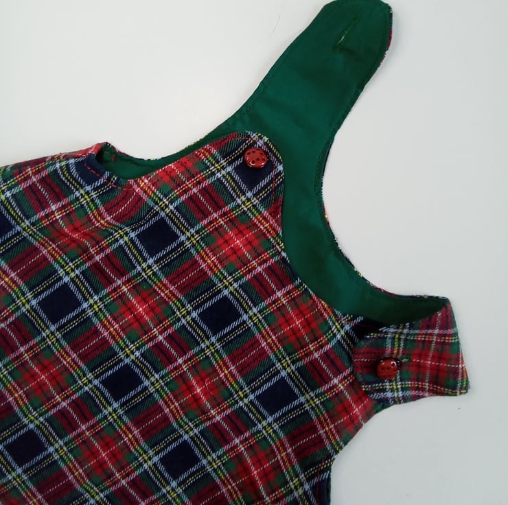 A line style dress/pinafore in a brushed cotton Tartan fabric.